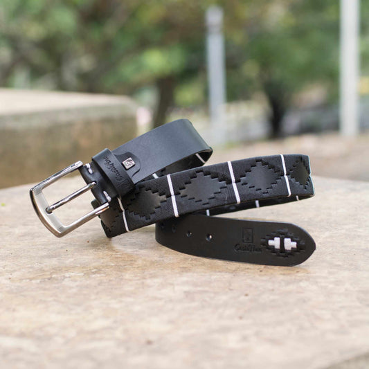 DOMINIO – Elegancia que Impone Respeto | Negro con detalles en blanco – Cinturón tejido CASTAFINA clásico (Ref. TC-036)