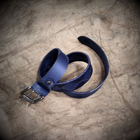 AZULADO – Fuerza Serena | Cuero azul con tejido en hilo azul profundo – Cinturón tejido CASTAFINA clásico (Ref. TC-045)