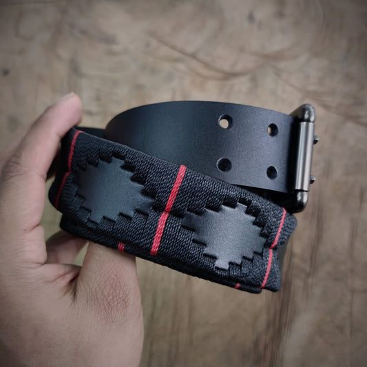 FUERZA – Tradición con Carácter | Negro intenso con detalles en rojo – Cinturón tejido CASTAFINA clásico (Ref. TC-001)