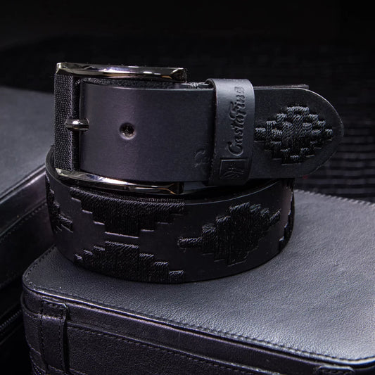 SOBERANO – Lujo con Mando Propio | Total black tejido a mano en cuero negro – Cinturón tejido CASTAFINA clásico (Ref. TC-002)