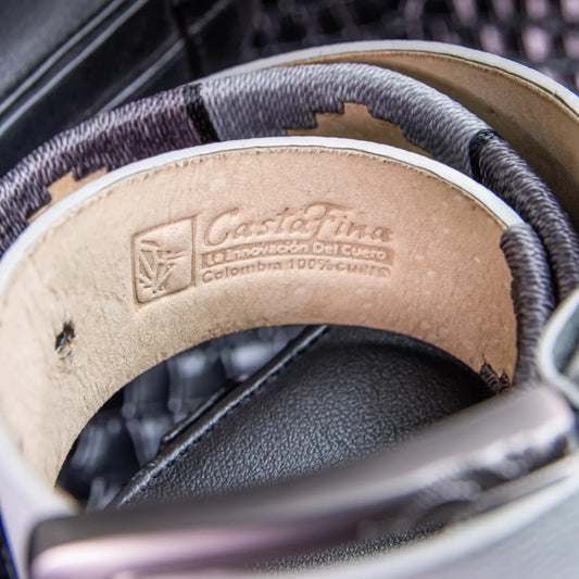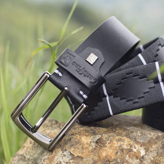 DOMINIO – Elegancia que Impone Respeto | Negro con detalles en blanco – Cinturón tejido CASTAFINA clásico (Ref. TC-009)