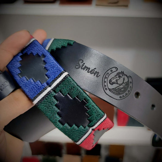 ÍMPETU – Espíritu Indomable | Cuero negro con tejido en verde, rojo y blanco – Cinturón tejido CASTAFINA clásico (Ref. TC-038)