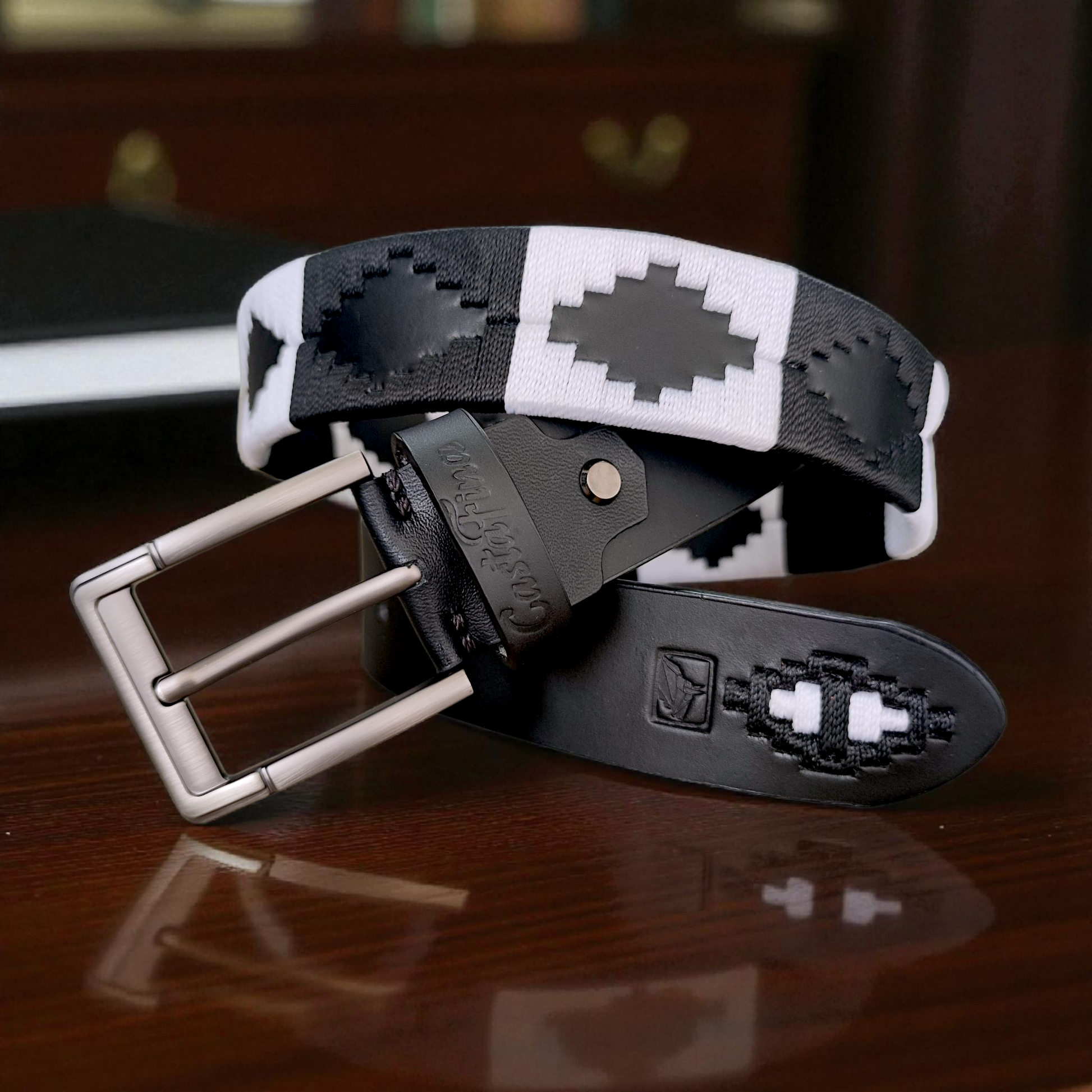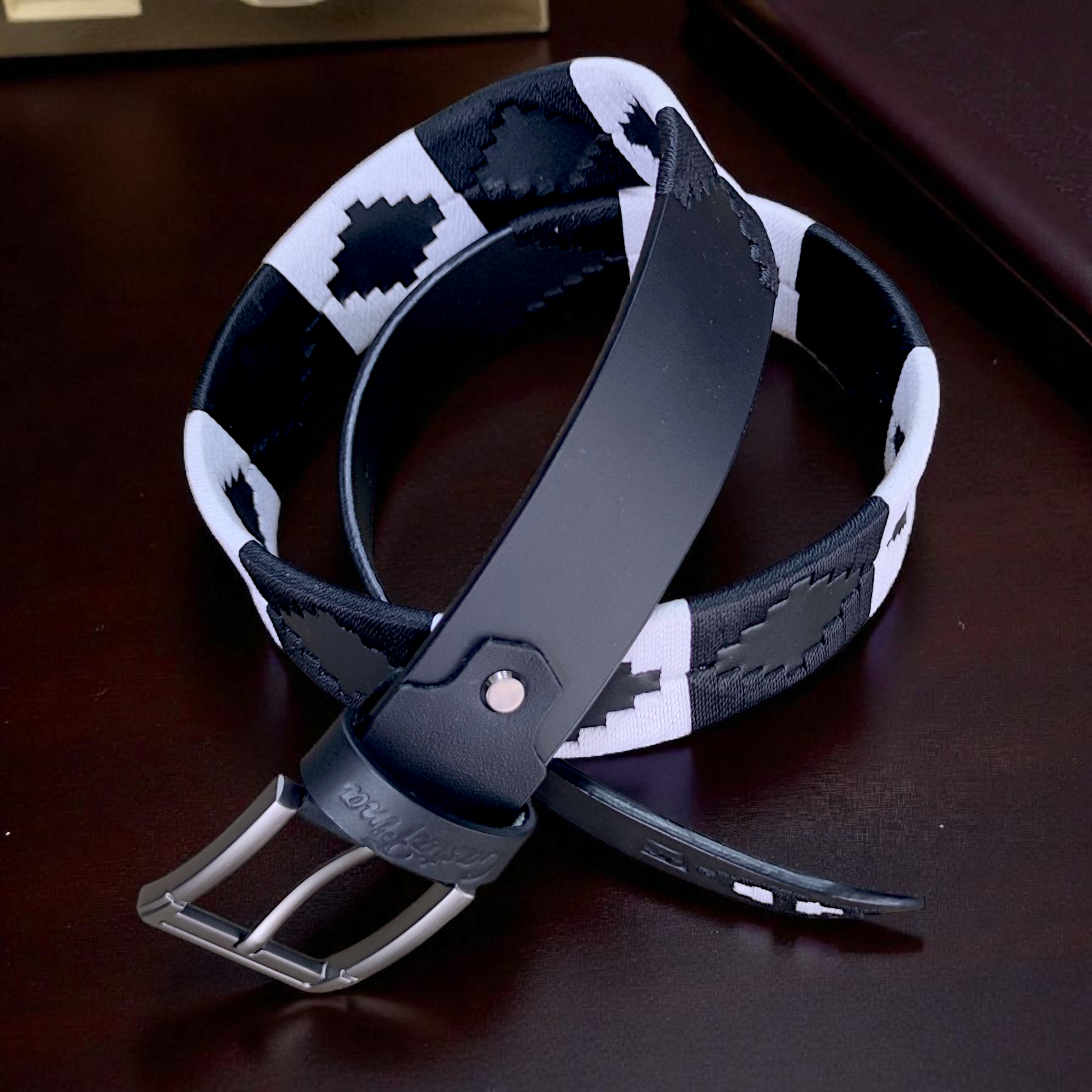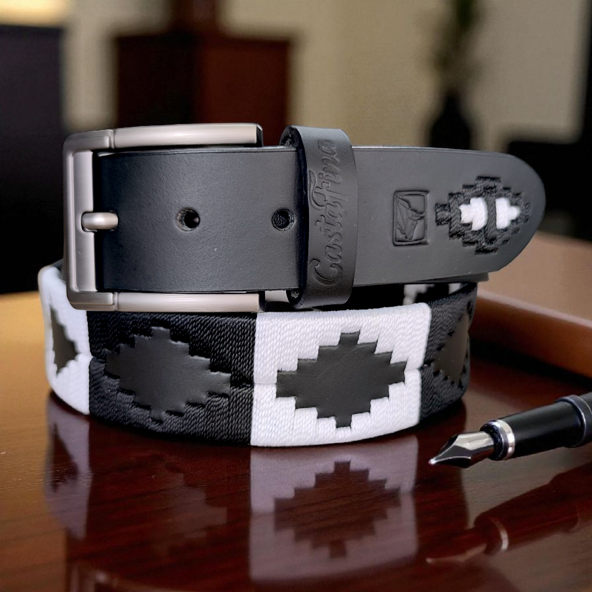 Una pieza creada para hombres que buscan elegancia absoluta. Este diseño combina cuero negro con un tejido impecable en hilos negro y blanco, logrando una presencia firme, moderna y llena de carácter. Un cinturón minimalista, sobrio y poderoso que destaca desde el primer vistazo.