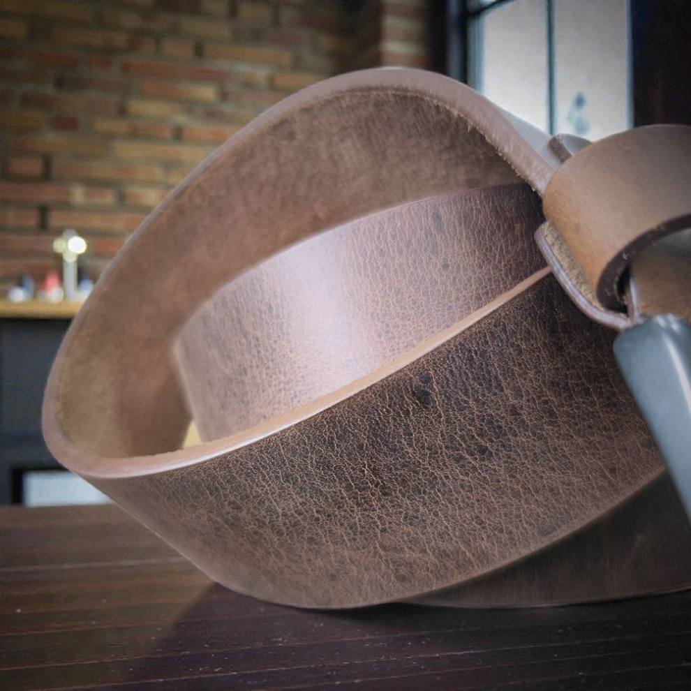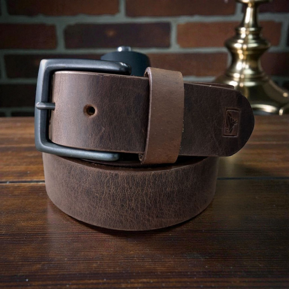 ÉPICO combina la fuerza del cuero café envejecido con una textura profunda y marcada que parece narrar una historia de carácter, lucha y determinación. Su diseño sobrio sin costuras y su hebilla en grafito mate lo convierten en una pieza con identidad propia, ideal para quienes llevan el poder con elegancia silenciosa.