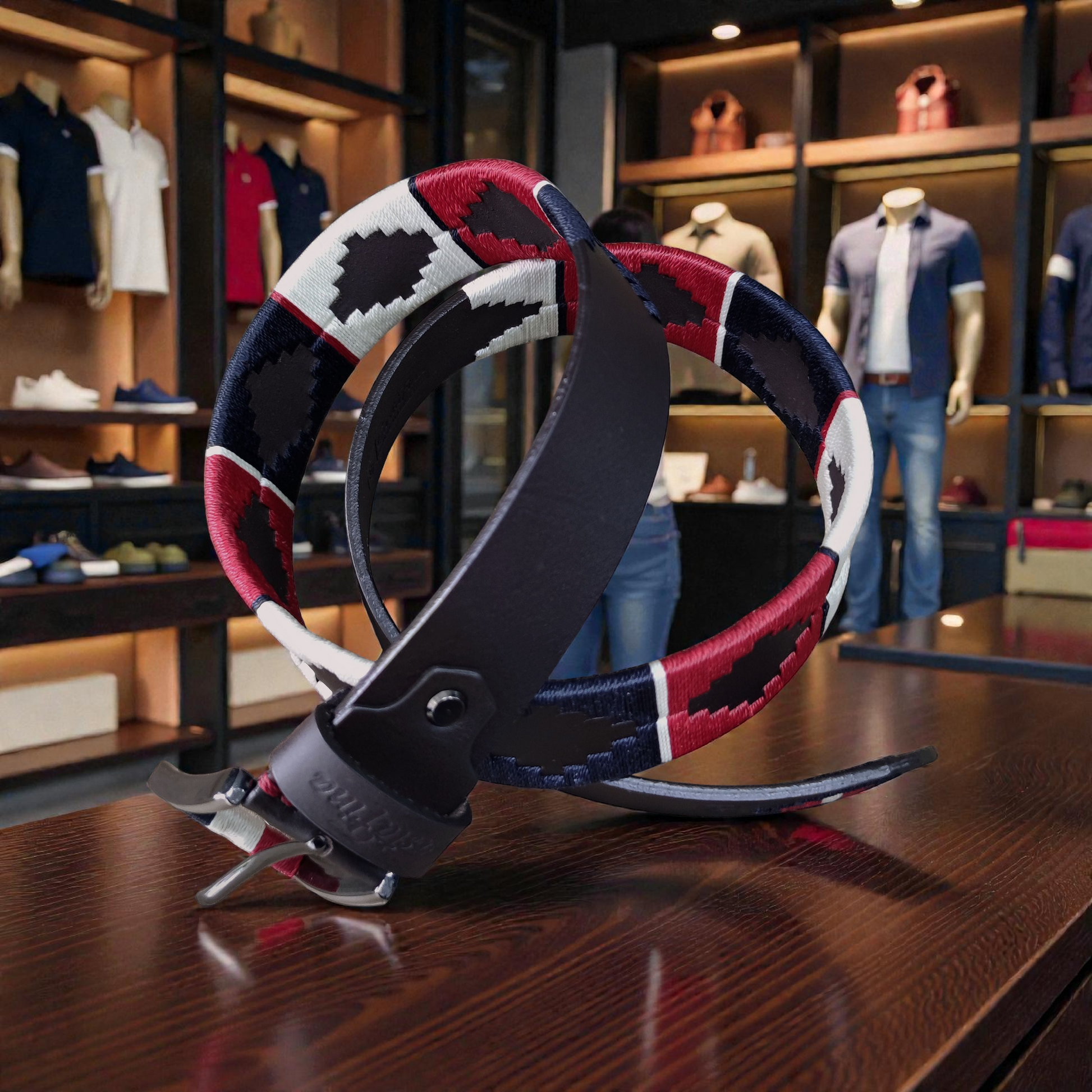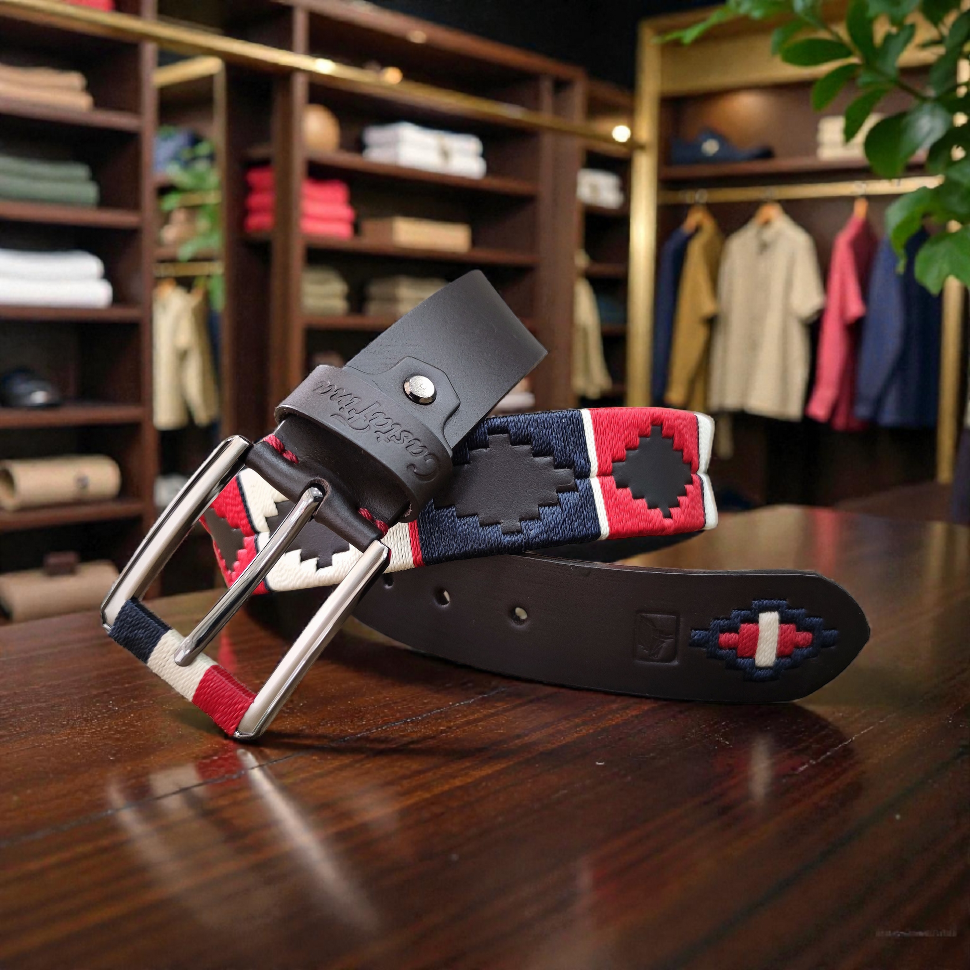 ESTIRPE es una pieza poderosa: cuero marrón de carácter profundo, tejido a mano con hilos rojo, azul oscuro y beige que proyectan herencia, decisión y equilibrio. Un cinturón para hombres que saben lo que valen… y no necesitan demostrarlo.