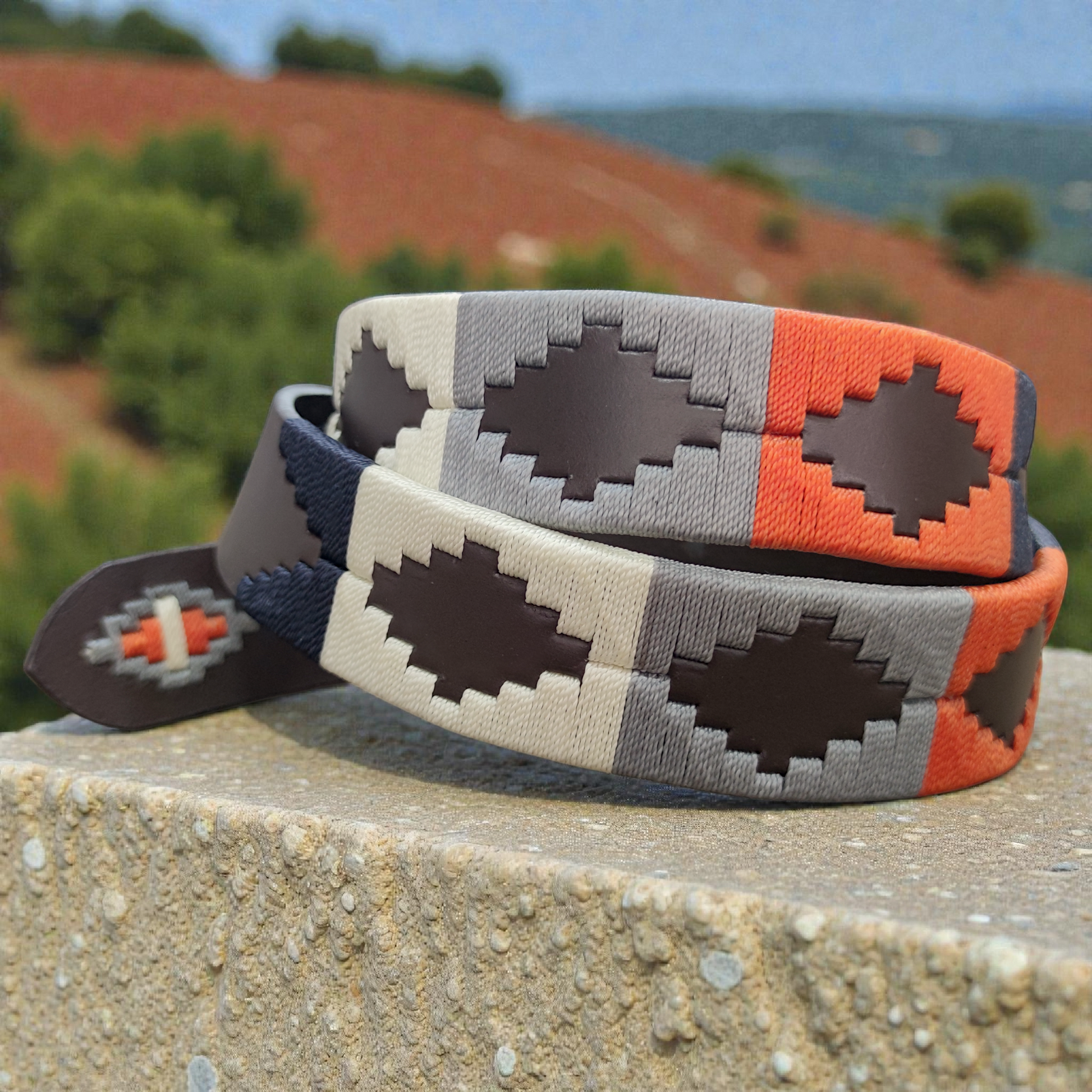 Una pieza creada para hombres que no se conforman con lo ordinario. MÁXIMO representa el punto más alto del carácter, la fuerza y la presencia. Su cuero chocolate profundo se combina con un tejido artesanal en tonos terracota, gris piedra, beige y azul noche, creando un contraste natural que transmite firmeza, energía y elegancia auténtica.