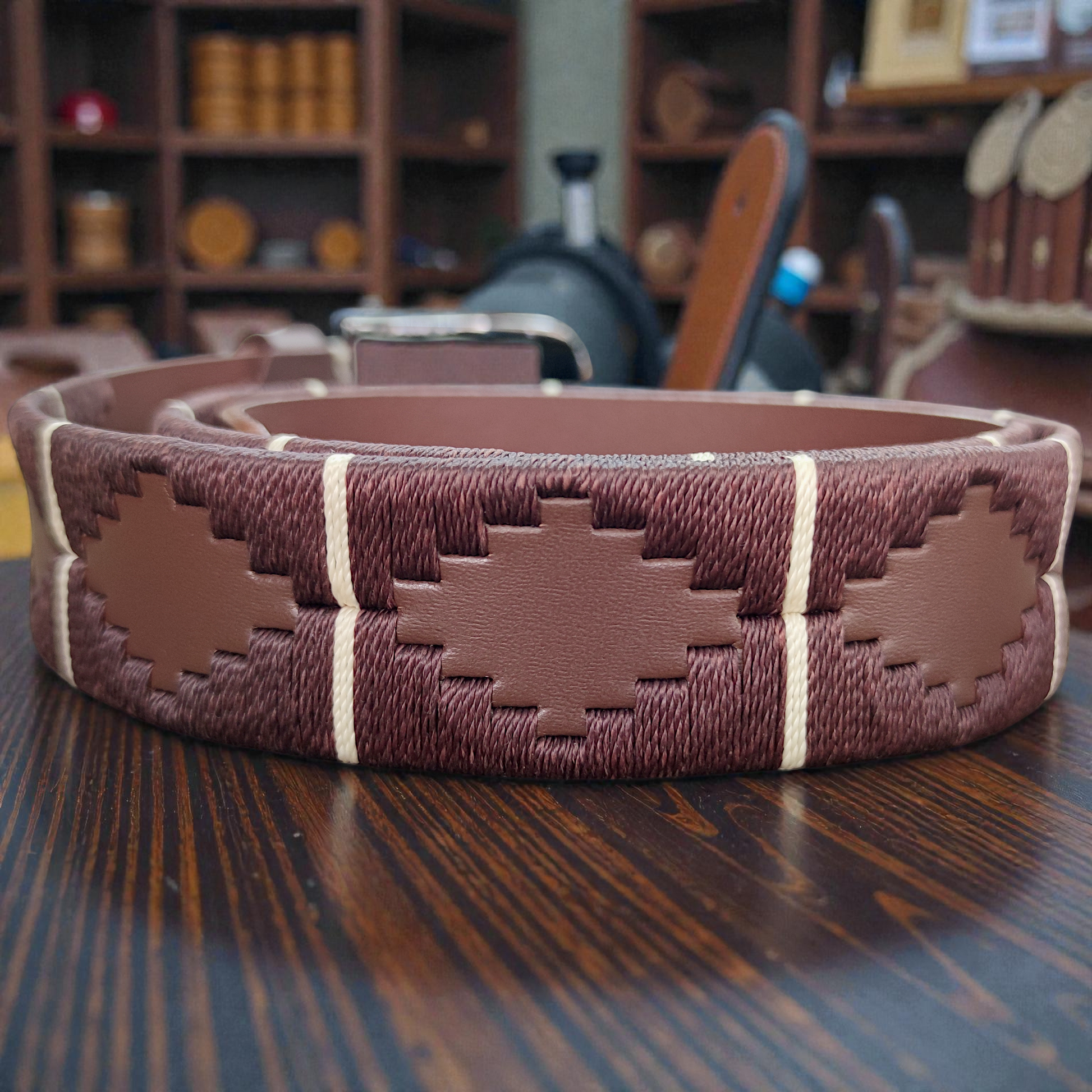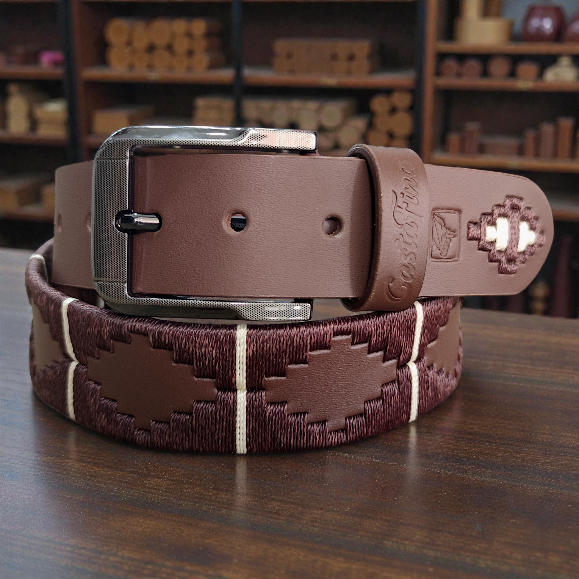 Ahí puedes solicitar personalización o elegir otro color de cuero, hilos o hebilla (valor adicional).