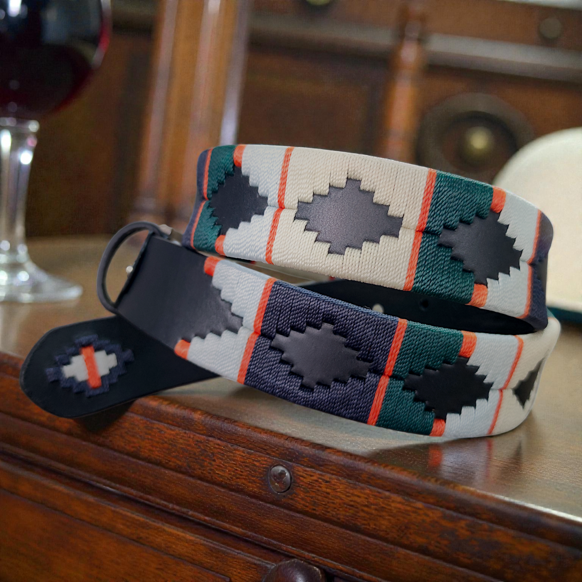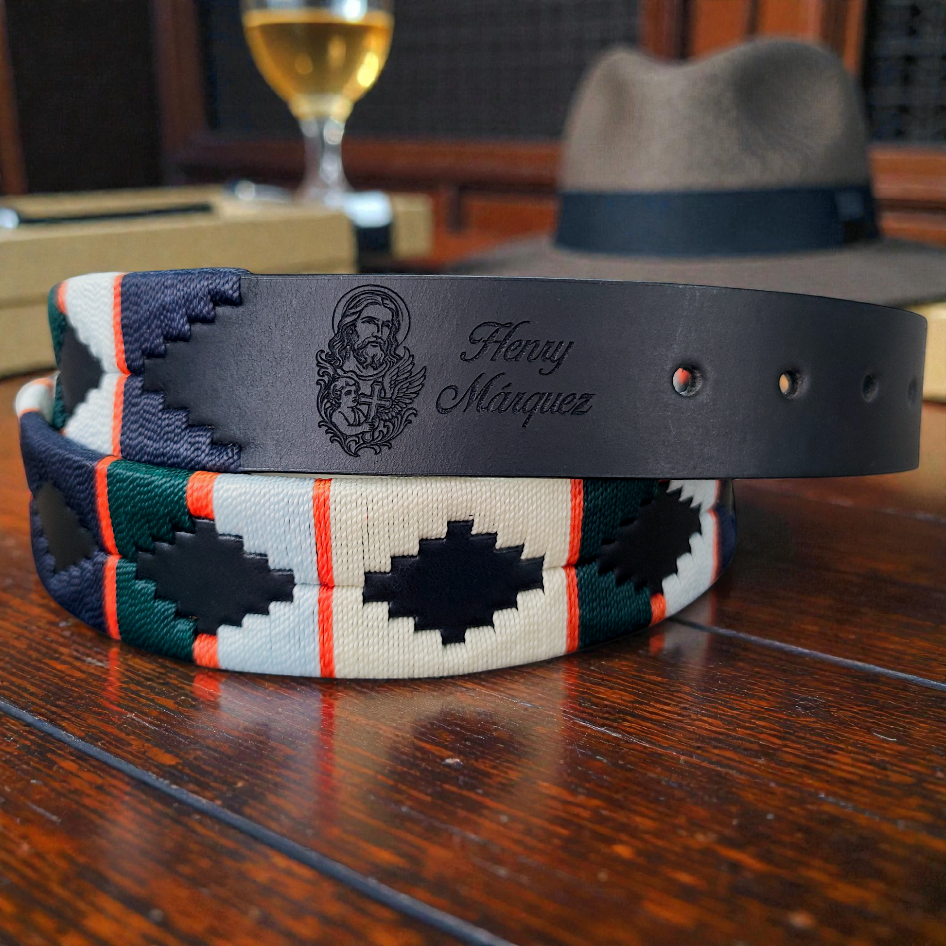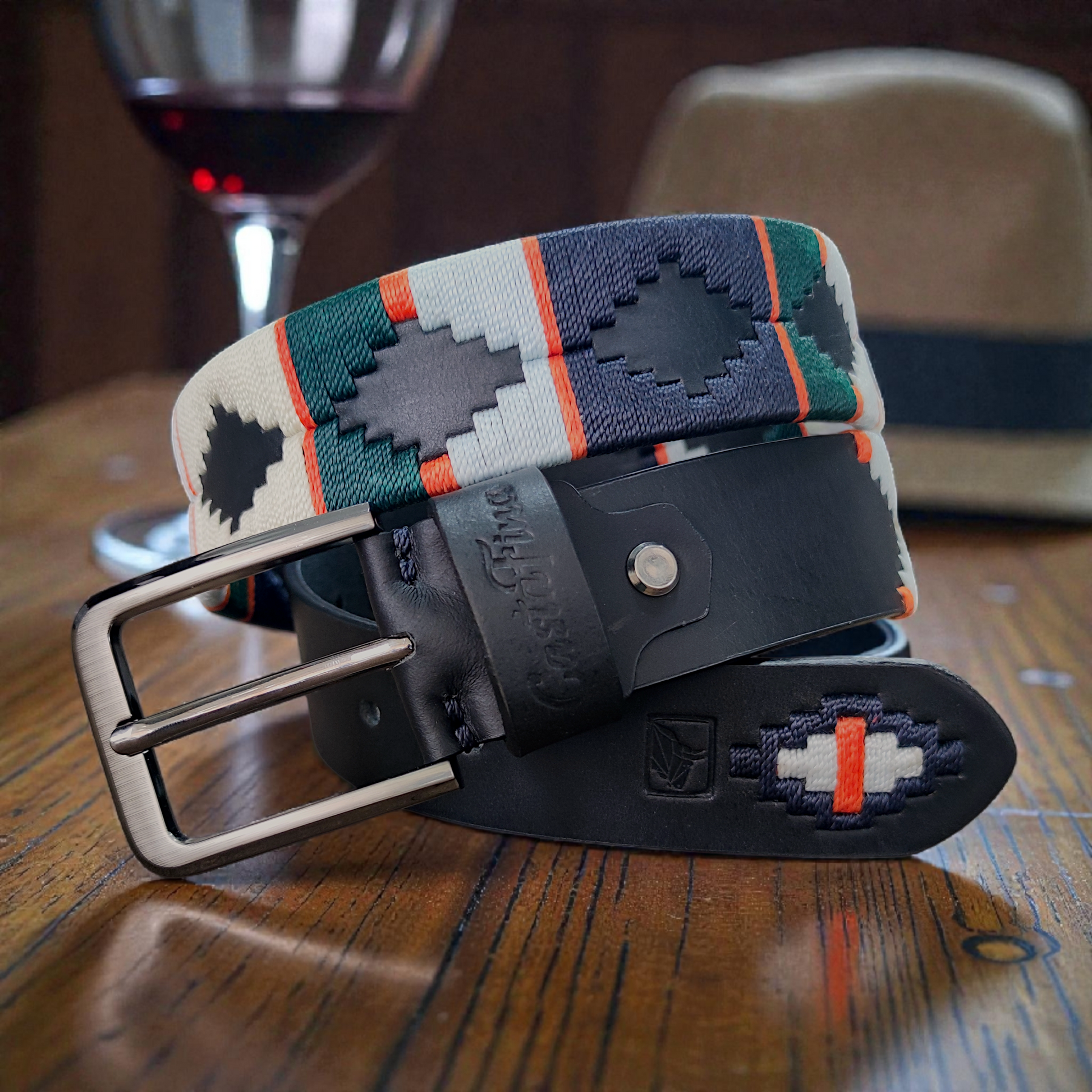ÍMPETU fue creado para quienes se mueven con decisión, energía y confianza. Su combinación de cuero negro con un tejido vibrante en azul cielo, verde, beige y toques naranja transmite acción, velocidad y personalidad arrolladora. Es un cinturón que no espera. Avanza.